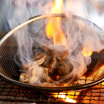 看板メニュー「炭火ざる焼き」は備長炭で仕上げており、コリコリ食感の「おやどり」や柔らかくヘルシーで珍しい部位の「たんたんやき」など、10種類以上をご用意しております。