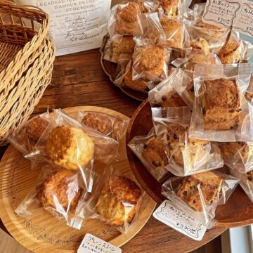 こだわりのスコーンは香ばしくやさしい味で、数種類のマフィンも楽しめます。