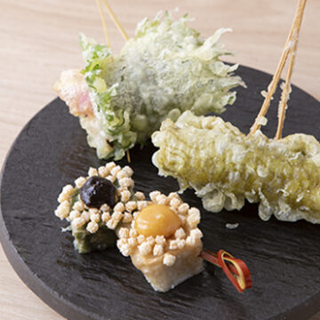 当日の仕入れにより内容が変わるアラカルトは、その日ならではの味に出会えるのが魅力♪おすすめは5~7種類ほどの逸品が乗った「先付け」です。