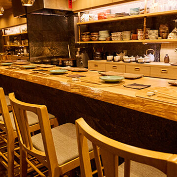 カウンター席では、料理人の調理姿を楽しめるライブ感と共に、料理についての会話も弾みます。