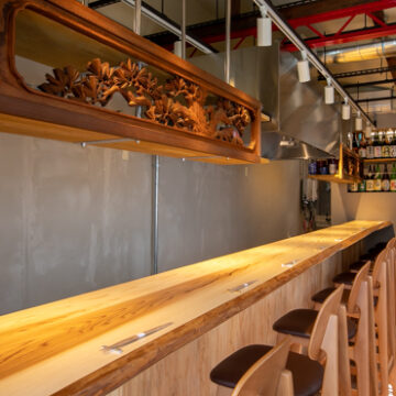 店内は、一枚板を使用した木のカウンターと完全個室を完備しております