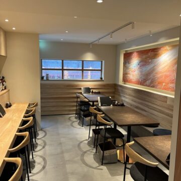 お一人でも入りやすい広々とした落ち着く店内には、カウンター席とテーブル席を完備。