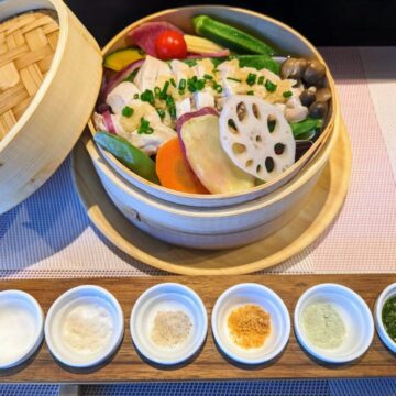 ヘルシーでジューシーな鶏肉と彩り鮮やかな野菜を蒸してご提供させていただいております。