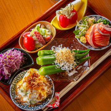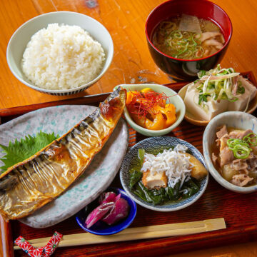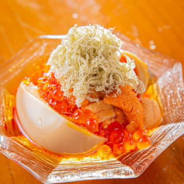 難波店で一番人気メニューの、【名物】肉だし巻き定食はもちろん心斎橋店でも食べられます。