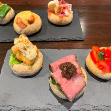 特に人気のメニュー「カナッペ&ブルスケッタ」は、淡路の有名店から仕入れたパンにお好きなソースを組み合わせていただくスタイル。