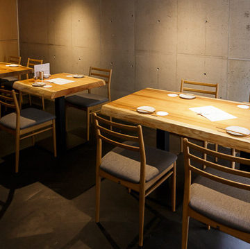 一枚板の欅のカウンターが自慢のシンプルで落ち着きのある空間で、お料理とお酒をゆったりとお楽しみください。