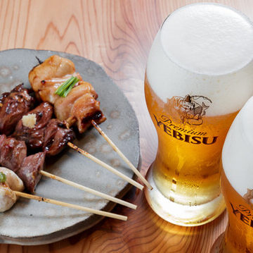 焼鳥との相性を考え厳選したエビスビールが串の余韻を程よく消し、次の串へと誘います。