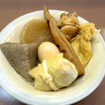 店内でしっかりと煮込んだおでんは、モチモチ食感が魅力のこんにゃくをはじめとする多彩な具をご用意。