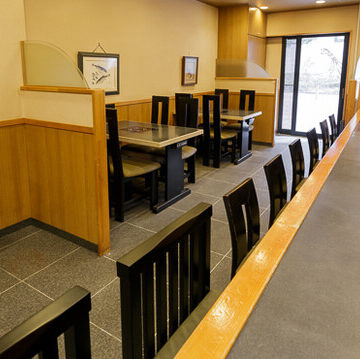店内には藁焼きの調理シーンが魅力のカウンター席と、グループ利用に便利なテーブル席もございます。