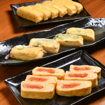 特に人気の「だし巻き玉子」は、ふつう、明石風、明太チーズの3種類をご提供。