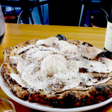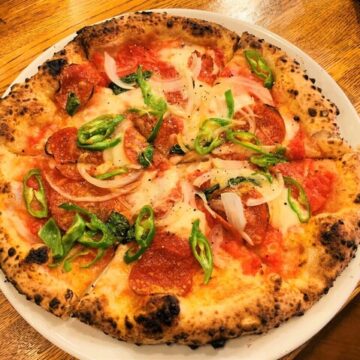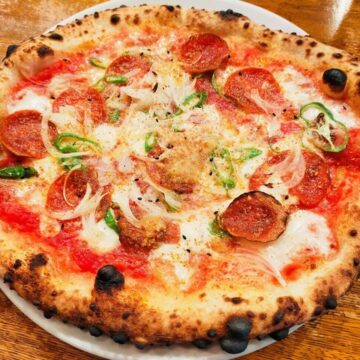 当店のピッツァは薪窯で焼き上げるため、外はサクッと中はモチっとした食感のピッツァに仕上がります。