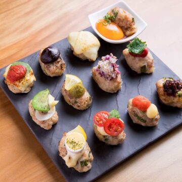 108種類の名物「彩りつくね」など炭火焼料理を堪能。