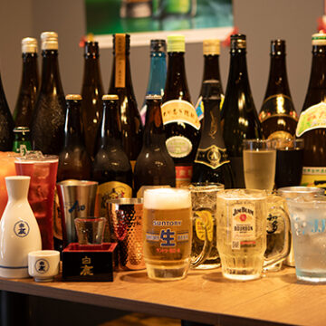 飲み放題には生ビールやサワー、ワイン焼酎日本酒、JJや翠など盛りだくさん!