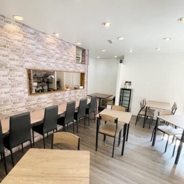 店内は白と木目を基調とした温かみのあるデザインで、カウンター席や壁向きの席を完備。