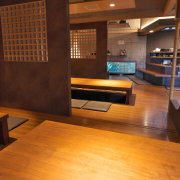 和の落ち着いた雰囲気の店内は、カウンター席と掘りごたつ席の他に、座敷席もご用意。