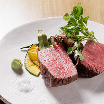 低温調理と炭焼で丁寧に焼き上げる「A4黒毛和牛ステーキ」。